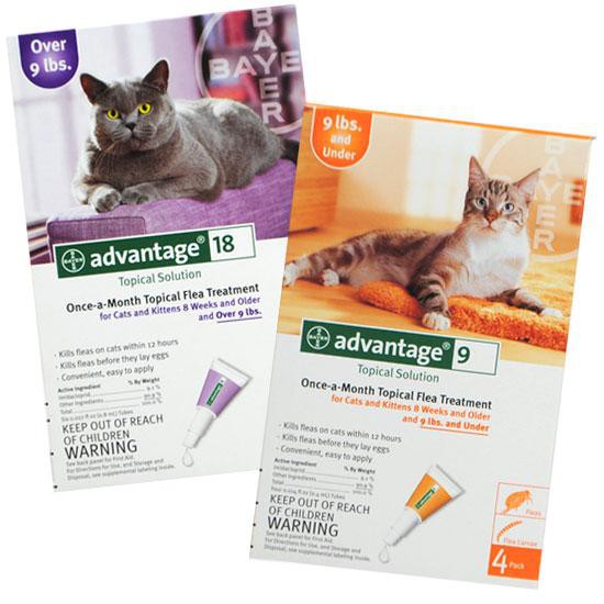 Advantage 2 flea control for cats and kittens over 9 lbs 4 month supply. Advantage flea treatment for cats is applied to your cats skin and gets to work quickly killing existing fleas within one day and re infesting fleas within an hour and for up to a month.